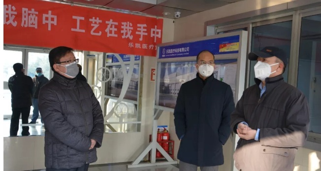 圖為滕方遷到樂凱醫(yī)療實(shí)地檢查復(fù)工工作